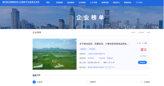 在上技所鹤壁中心的推荐下,德粮电子与长三角国家技术创新中心团队取得联系,对其具体技术需求进一步梳理和细化,并助力其在浦东新区揭榜挂帅信息化平台发布了技术需求,同时组织上海、江苏等地多家院校科研团队,围绕企业需求进行密切对接。