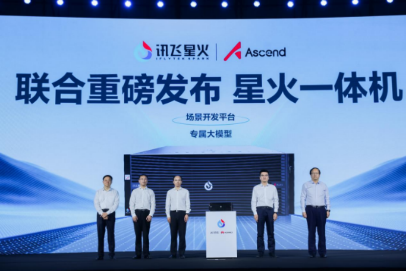 今年7月6日,科大讯飞公布讯飞星火将与昇腾AI强强联合,打造基于中国自主创新的通用智能新底座。此次发布会,科大讯飞与华为再度合作,联合发布星火一体机,让企业可以在国产自主创新的平台上,更方便、更自主、更安全可控地私有化部署大模型。
