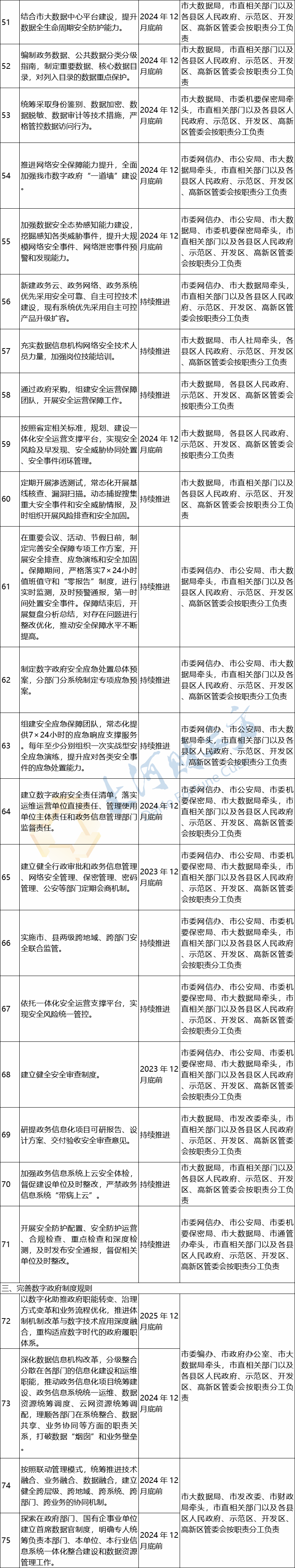 目标到2025年,数字政府建设成效明显,数字化转型取得实质性成效,全市数字政府建设统筹协调和整体协同机制更加健全,安全高效的基础架构和公共平台支撑体系基本形成,数据资源有效赋能政府治理和经济社会高质量发展,行政审批制度实现数字化、系统性重塑,政府履职能力和政务服务环境整体提升,一体化政务服务能力主要指标和营商环境相关指标位居全省前列。