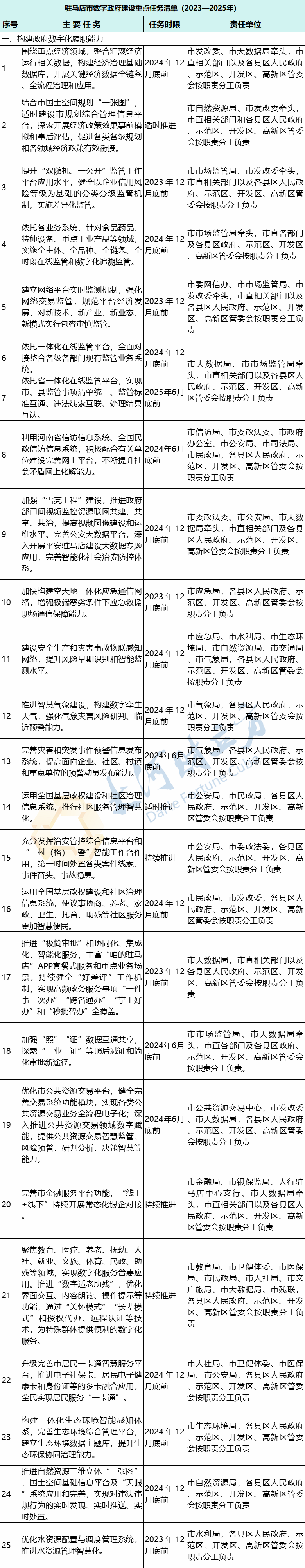 附:驻马店市数字政府建设重点任务清单(2023—2025年)