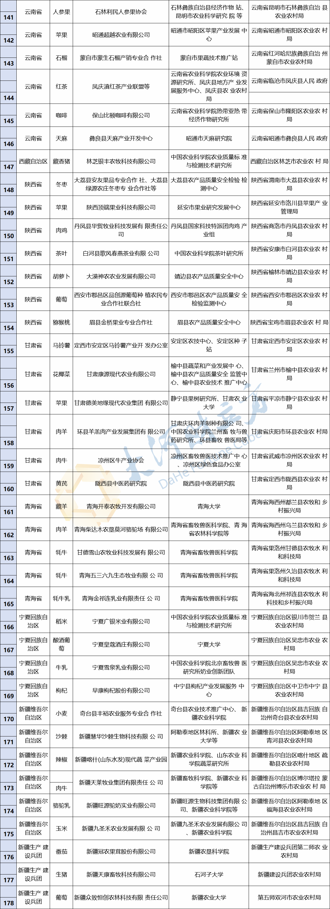 【大河财立方消息】8月29日消息,农业农村部办公厅日前公布第一批农业高质量发展标准化示范基地(国家现代农业全产业链标准化示范基地)创建单位,经县市审核、省级推荐和农业农村部组织专家对创建方案进行论证,确定第一批178个示范基地创建单位名单。