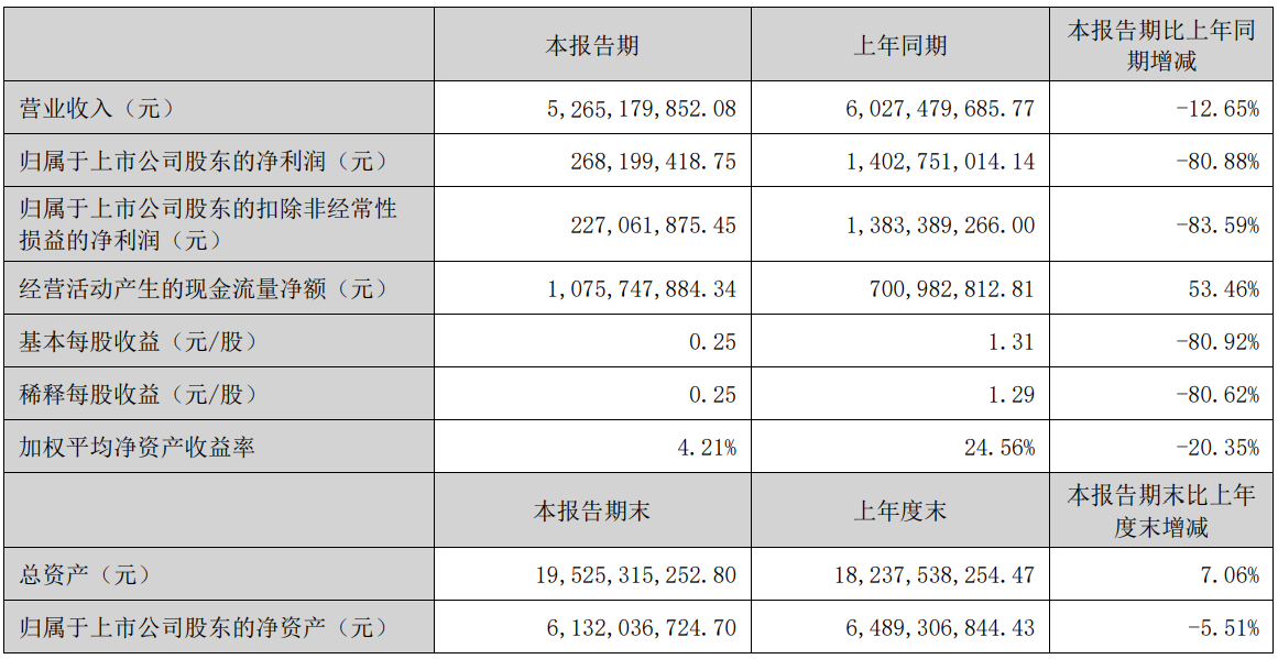 报告显示,上半年多氟多实现营业收入52.65亿元,归母净利润为2.68亿元,扣非归母净利润为2.27亿元。