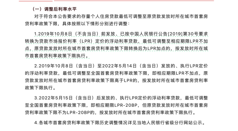 整体来看,上述几家城商行存量首套住房贷款利率调整细则与国有大行的脉络基本一致。从调整规则上看,上述银行均按照三个时间段来划分贷款的具体调整幅度。例如重庆银行在公告中对2019年10月8日(不含当日)前、2019年10月8日(含当日)至2022年5月14日(含当日)、2022年5月15日(含当日)三类情形下发放的贷款分别进行调整。