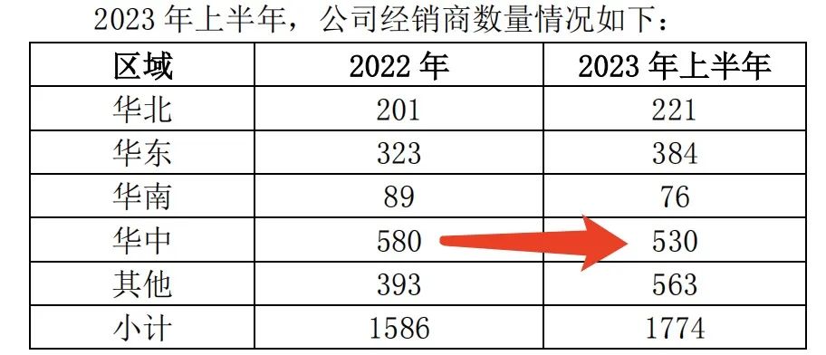 蔡学飞表示,酒鬼酒合同负债也连续三个财报周期出现双位数下滑,上半年仅为4.48亿元,同比下降19.42%,可能说明市场对于酒鬼酒未来销售信心不足,观望情绪浓厚。也佐证了今年上半年酒鬼酒核心市场对华中地区经销商减少了50家,核心市场经销商数量下降,可能说明酒鬼酒渠道承压较大,也为酒鬼酒下半年销售蒙上一层阴影。