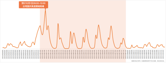 时段上,9月28日下午开始,出城流量将逐渐增加。预计9月29日上午9时—12时将迎来流量最高峰,假期最后两天的15时—20时为返程流量高峰,峰值出现在16时—18时。