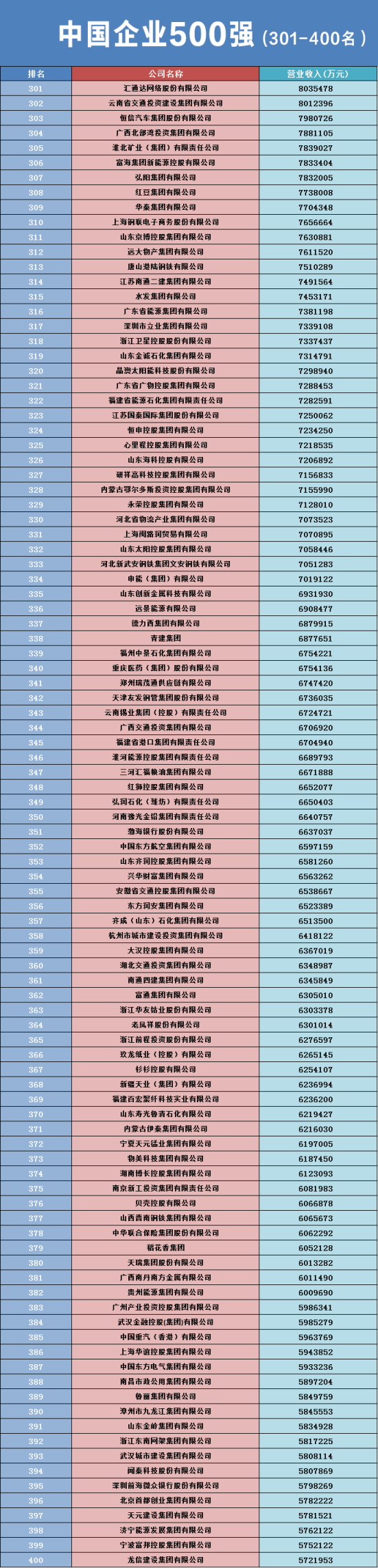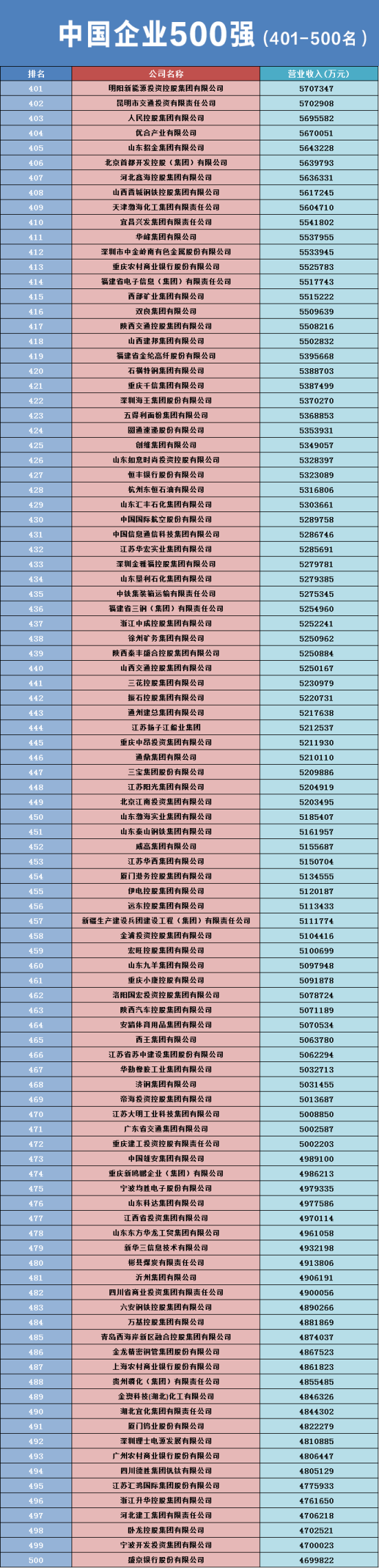 2023中国企业500强规模继续保持增长态势,营业收入总额108.36万亿元,比上年500强增加5.74%;资产总额为399.77万亿元,比上年500强增加了27.24万亿元,增长了7.31%;入围门槛连续21年提高,2023中国企业500强入围门槛为469.98亿元,比上年增加23.73亿元。