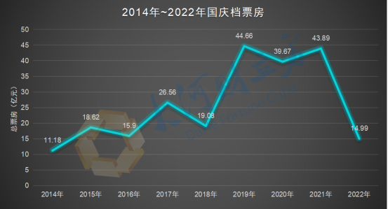追溯过往,在票房方面,2019年起国庆档票房从15亿元~25亿元左右,上升至40亿元~45亿左右;题材方面,2019年前喜剧类影片占据主导,开心麻花先后凭借《夏洛特烦恼》《羞羞的铁拳》等多部爆品,奠定喜剧市场地位。2019年后,主旋律电影密集牵手国庆档,《我和我的祖国》系列,《长津湖》等成为档期内贡献票房的主力。