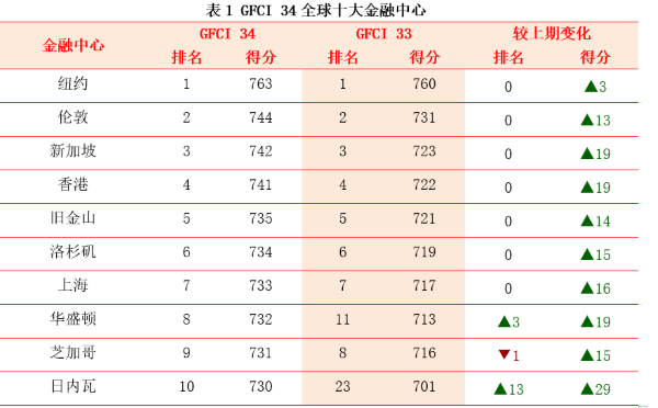 这份由英国智库Z/Yen集团与中国(深圳)综合开发研究院联合发布的报告,名为“第34期全球金融中心指数报告(GFCI 34)”。该指数从营商环境、人力资本、基础设施、金融业发展水平、声誉等方面对全球主要金融中心进行了评价和排名。