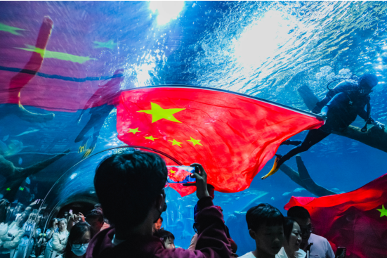 为了满足更多游客的游玩需求,银基动物王国将假期的营业时间从每日10小时延长为12小时。游客的热情让“双节”期间诞生了多项爆款节目,国宝金丝猴、金毛羚牛吸引游客纷纷前来打卡、拍照;中部地区最大的沉浸式户外裸眼3D投影秀——“龙翔盛世”,让游客惊呼连连;“水下国旗漫卷”等“花式告白祖国”的国庆特别活动,更是点燃游客的爱国情怀,频登热榜。