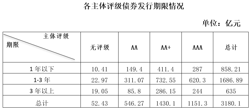 从2023年1—9月各期限发行规模来看,1—3年(含3年)发行规模1686.89亿元,发行占比最高,为53.05%;1年以下的发行规模858.21亿元,占比26.99%,3年以上的发行规模635亿元,占比为19.97%。在发行利率方面,2023年1—9全省1年以下(含1年)债券平均利率4.54%,1—3年期(含3年)债券平均利率4.99%,3年以上平均利率4.60%。