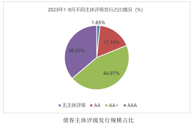 主体信用评级是企业发债的重要参考指标,往往评级越高在发债市场越具优势。大河财立方记者了解到,从2023年1—9月各主体评级发行规模来看,主要以AA+以上高评级主体为主。其中AA+评级发行占比最高,为44.97%;AAA评级占比36.20%;AA评级及以下占比18.83%。与此相对应,2023年1—9月,AA主体评级债券发行平均利率5.98%;AA+主体评级发行利率4.59%;AAA主体评级发行利率4.17%。