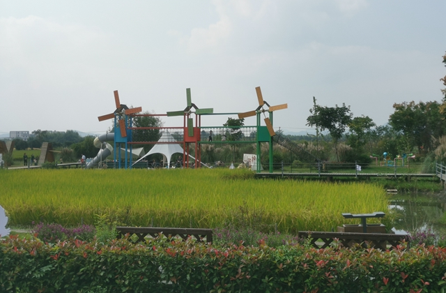 走在永安村,伫立着用稻草扎成的巨型猩猩、大象的田间风景,以及在稻田间建成的儿童游乐设施,“浑水摸鱼”、“珍珠开蚌”等项目也吸引着孩子和年轻人。