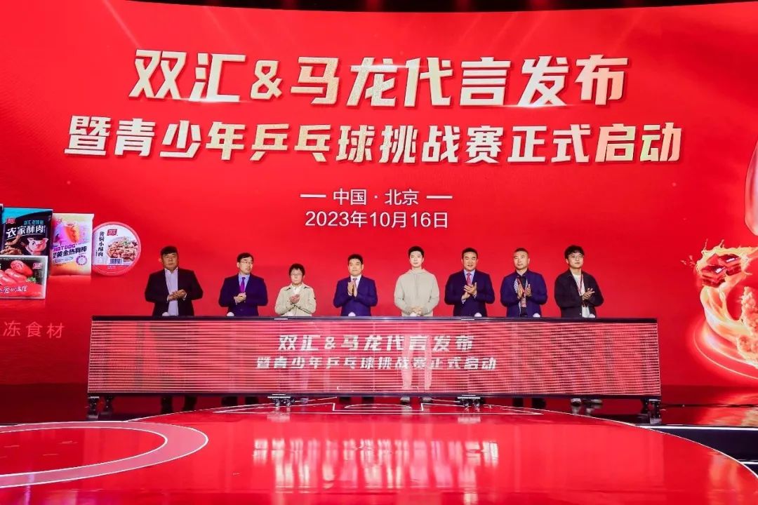 10月16日下午,马龙代言双汇发布会暨青少年乒乓球挑战赛启动仪式在北京中国电影导演中心隆重举行。来自消费者、销售商、媒体等各界嘉宾代表出席活动,在他们的共同见证下,双汇发展总裁马相杰正式宣布马龙为双汇品牌代言人。