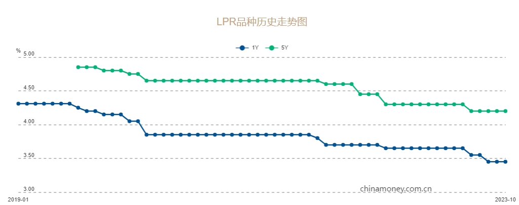 中国人民银行授权全国银行间同业拆借中心公布,2023年10月20日贷款市场报价利率(LPR)为:1年期LPR为3.45%,5年期以上LPR为4.2%。以上LPR在下一次发布LPR之前有效。