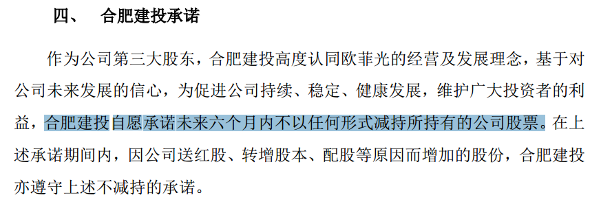 在上述承诺期间内,因欧菲光送红股、转增股本、配股等原因增加的股份,合肥建投亦遵守上述不减持的承诺。