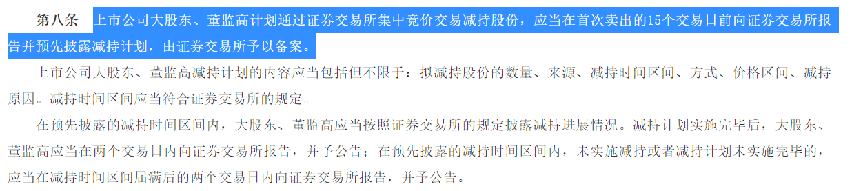 图为:《上市公司股东、董监高减持股份的若干规定》第八条规定