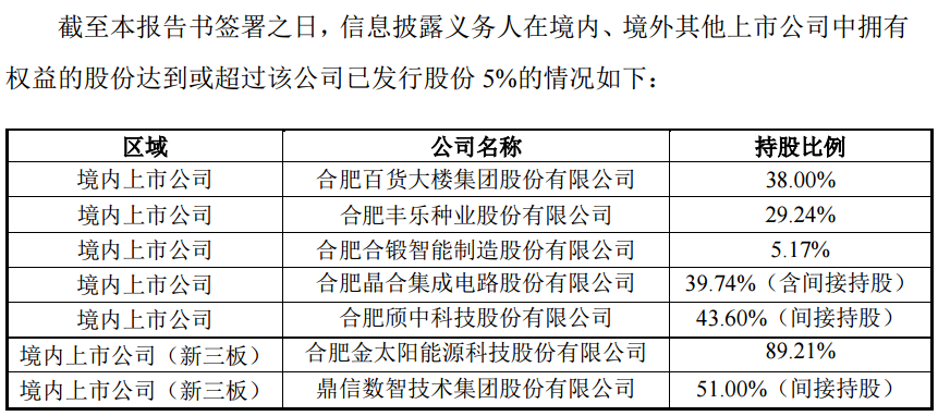 图为:合肥建投入股的境内上市公司名单 来源:欧菲光公告