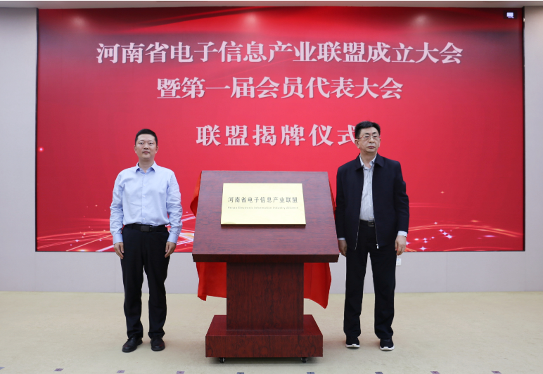 10月30日下午,河南省电子信息产业联盟成立大会在郑东新区信息产业大厦举行。省工业和信息化厅二级巡视员董建明和豫信电科集团总经理何航校共同为河南省电子信息产业联盟揭牌。
