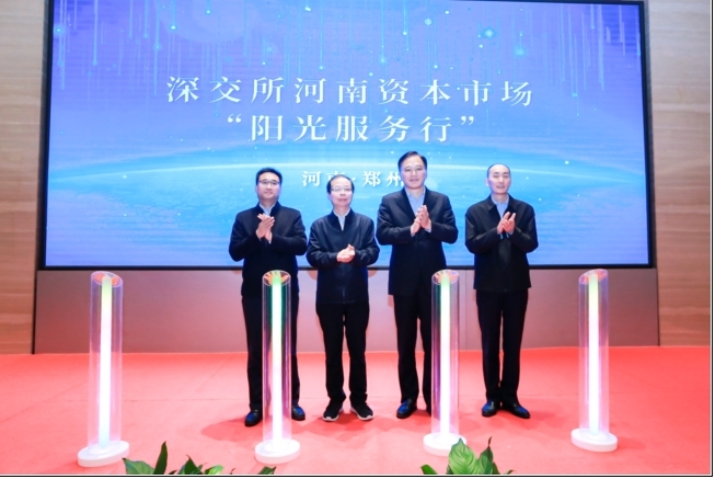 活动现场,深圳证券交易所副总经理李鸣钟、河南省地方金融监管局副局长张云定、河南证监局副局长李保成、郑州高新区党工委副书记王德敏共同启动深交所河南资本市场“阳光服务行”活动,为河南企业赋能,共同助力河南资本市场发展。