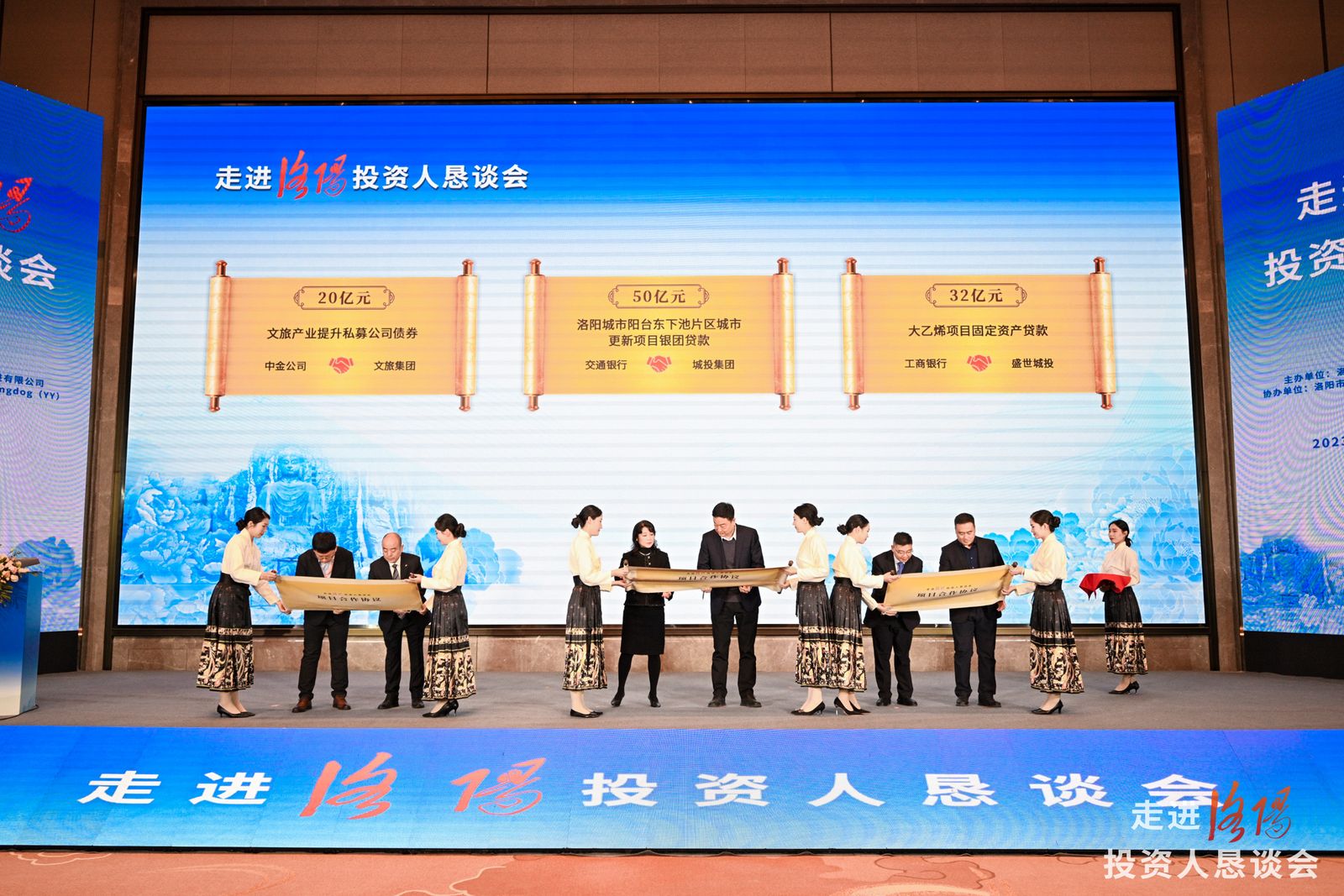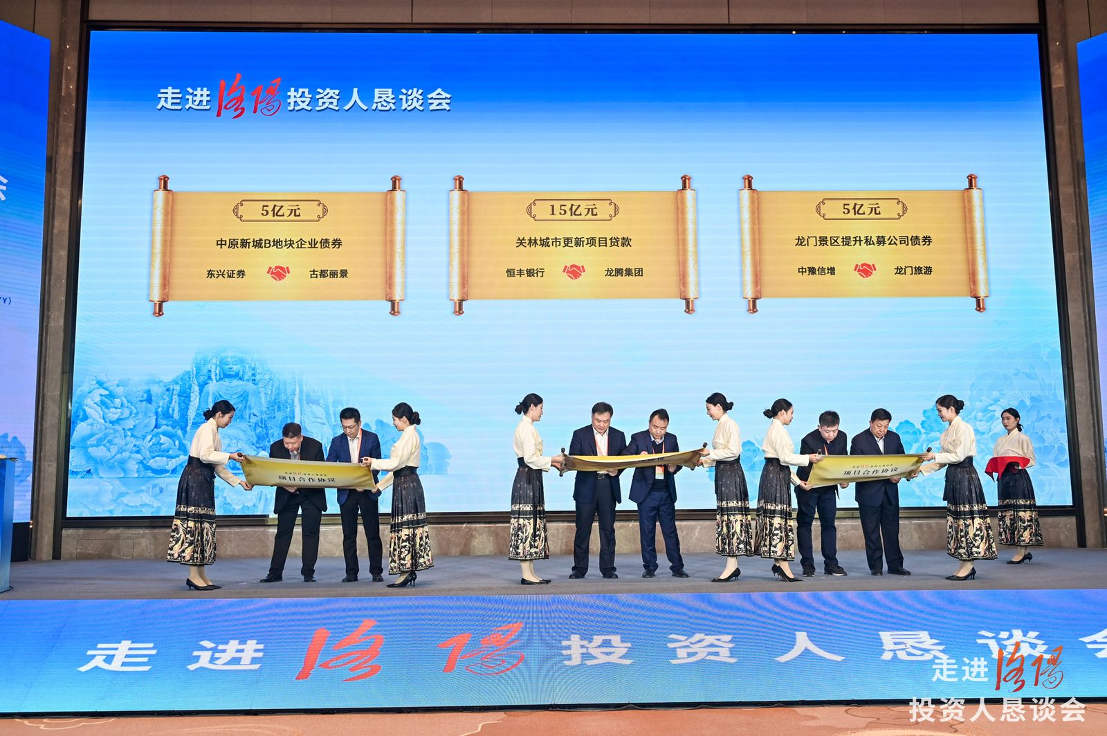 【大河财立方 记者 关帅康 文 朱哲 李博 摄影】11月13日,“走进洛阳投资人恳谈会”在洛阳伊水度假酒店国际会议中心举行,旨在展示洛阳经济发展成果,搭建洛阳市重点企业与各方投资机构、行业专家合作交流的平台,以“信用洛阳”助力“信用河南”建设,推动河南债券市场高质量发展。活动举行多个签约仪式,签约项目合计金额约340亿元。