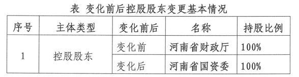 河南自然资源投资集团:控股股东拟由省财政厅变更为省国资委