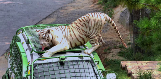 银基动物王国的王牌项目“酋长之家”获得了2023年度中国主题公园优秀体验项目荣誉,项目以沉浸式的动物主题体验和互动为特色,酋长之家VIP观光车则全身覆盖特质钢网,在保护游客安全的同时,让游客沉浸式体验与动物近距离接触,在野生动物的领地与老虎、棕熊、狮子相处,享受惊心动魄的野外探险之旅。