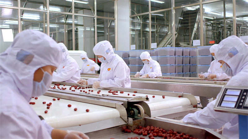 “冻干技术早些年主要应用于生物医药、航天食品等领域的加工,这项技术能够更好地保持食物原有的风味。”石勇说,在健康食品的基础上,保持食物美味,是好想你一直的追求。看准冻干技术这条新赛道之后,公司引进了冻干技术全产业链,建设了10万吨冷库、医药级GMP标准生产车间及全球高智能化FD冻干车间,为好想你的研发创新工作安上“加速器”。