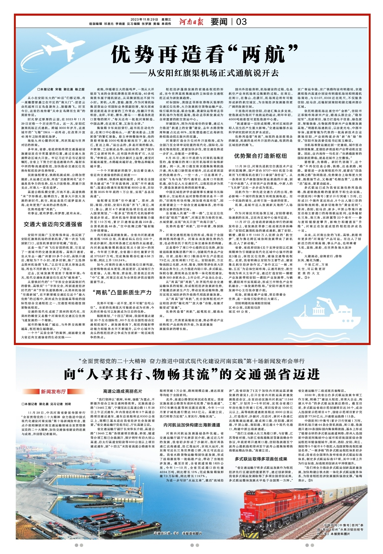 从“两高”到“两航”,补齐现代综合交通运输体系的短板,形成枢纽经济发展新优势,才能激活新质生产力,带动实现动能转换,继而实现区域经济的升级换代和高质量发展。