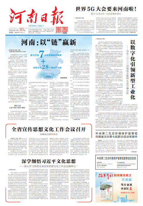 今年以来,省委、省政府围绕学习贯彻习近平总书记全国两会重要讲话精神,第一时间将推进新型工业化的重点聚焦到提升产业链现代化水平上来。省委十一届五次全会进一步提出,聚焦“六新”突破、以新型工业化支撑中国式现代化建设河南实践。