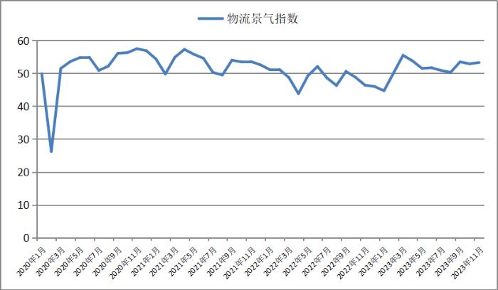 【大河财立方 记者 丁洋涛】12月4日,中国物流与采购联合会发布2023年11月份中国物流业景气指数为53.3%,环比回升0.4个百分点。
