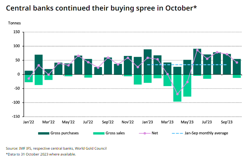 “在10月出现净购买之前,我们就注意到2023年可能是又一个央行购金大年。随着四季度购金数据的良好开局,今年全球央行的购金量有望再创新高。”Krishan Gopaul表示。