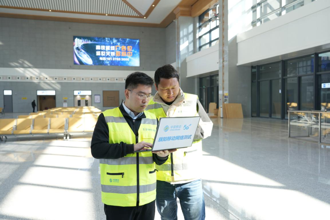 在濮阳东站高铁站内外,河南移动濮阳分公司工作人员手持网络测试笔记本电脑,正在前后左右不停地测试数据。“下载速率821Mbps”“上传速率135Mbps”移动网络的卓越表现,不时从各个角度的对讲机中传出,工作人员略显疲惫的脸上绽放出大功告成的笑容。