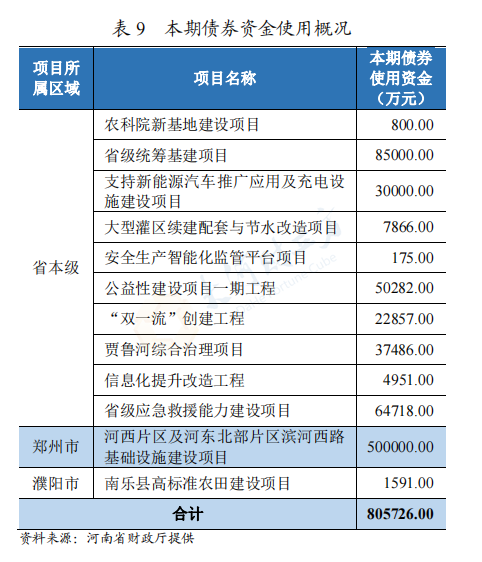 河南省财政厅此前披露的发行文件显示,本期债券募集资金投向农科院新基地建设、省级统筹基建、支持新能源汽车推广应用及充电设施建设、“双一流”创建工程、贾鲁河综合治理、省级应急救援能力建设等12个项目。