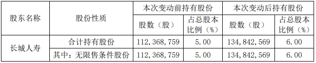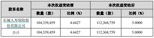 长城人寿称,此次增持是基于保险公司自身配置需求以及上市公司配置价值考虑的长期投资。本次权益变动后,长城人寿不排除未来12个月内继续增加上市公司股份的可能性。
