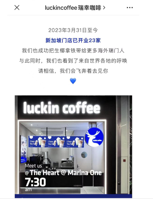 海外市场方面,据悉,瑞幸咖啡出海的第一站,是在新加坡,首家门店于今年3月31日落地,至今,新加坡门店已开业23家。
