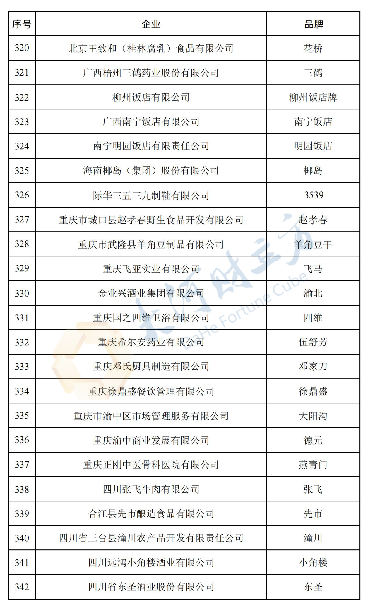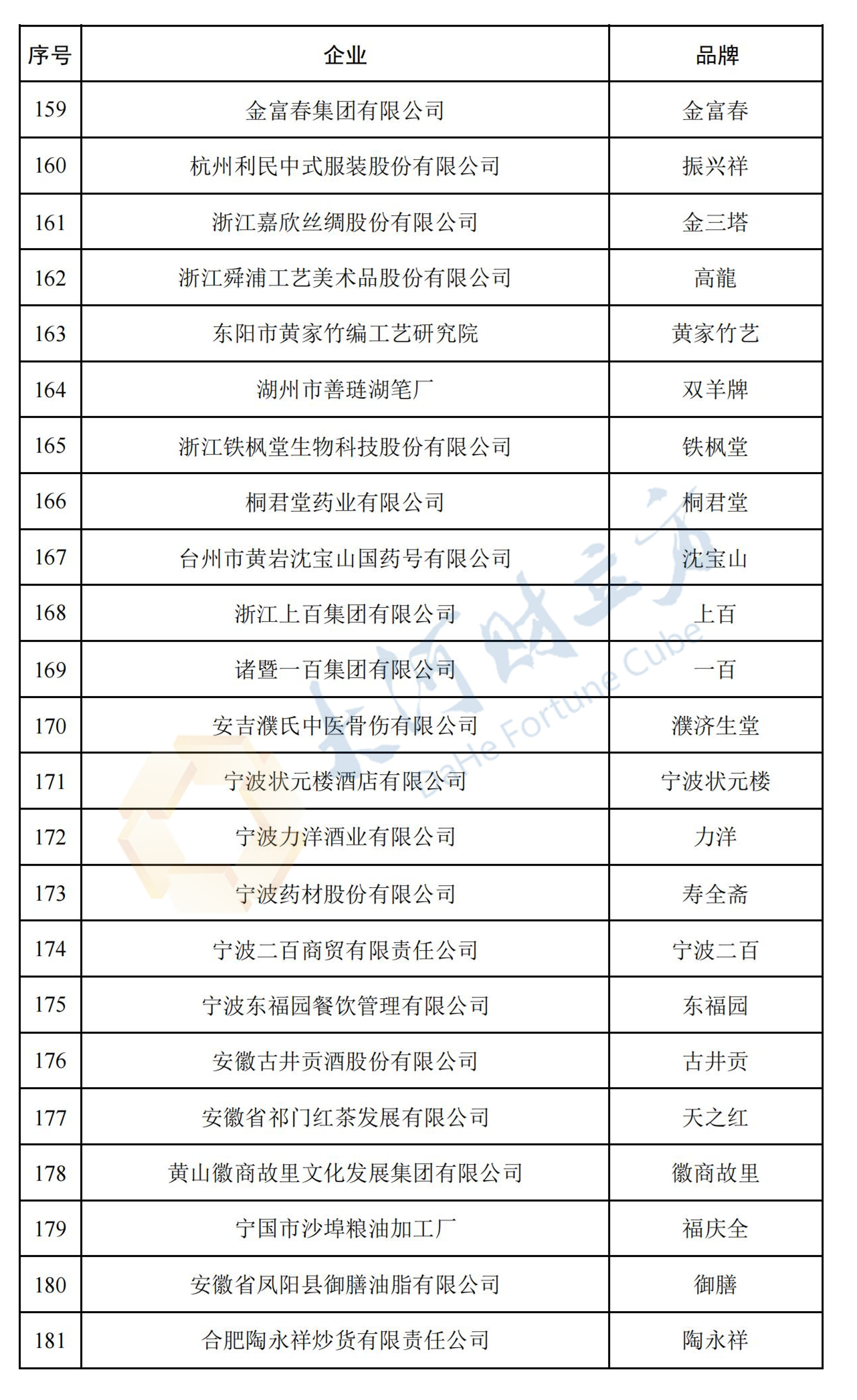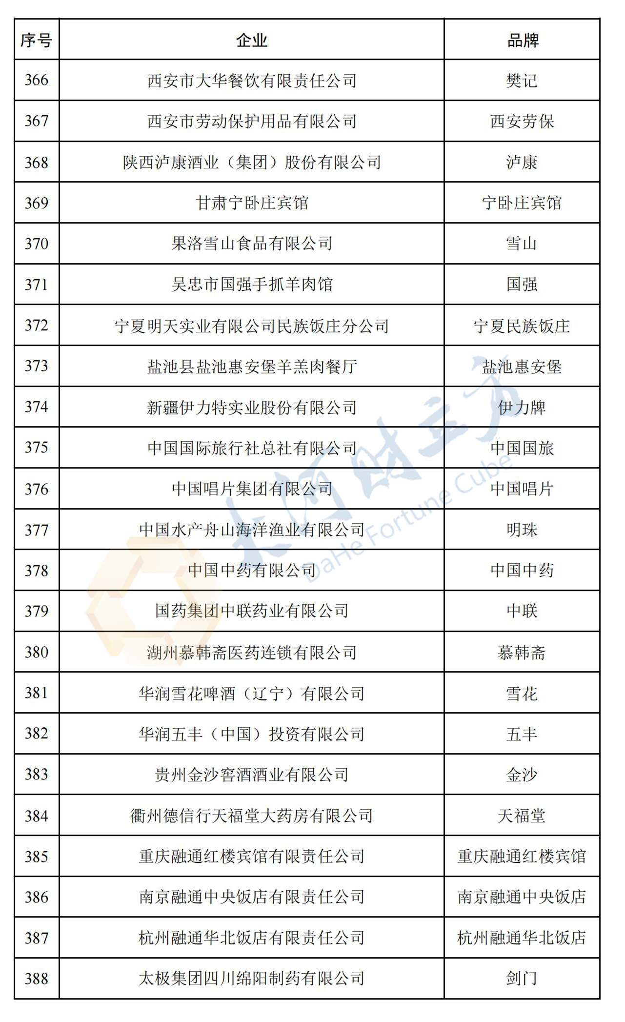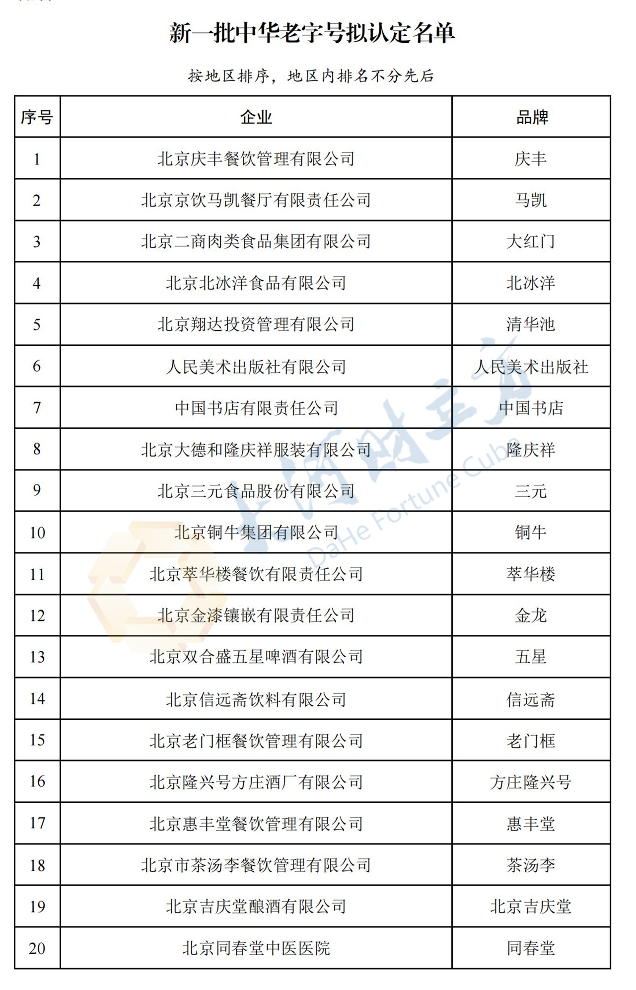 【大河财立方消息】12月21日,商务部公示新一批中华老字号拟认定名单。商务部、文化和旅游部、市场监管总局、国家知识产权局、国家文物局等5部门坚持“优中选优”的工作原则,组织开展了新一批中华老字号认定,在企业申报、地方推荐的基础上,遴选出388个品牌,拟认定为新一批中华老字号。