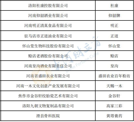 其中,河南15家企业的15个品牌入选,主要包括杜康、仰韶牌、怀山堂、赊店、仲景等,主要涉及企业有洛阳杜康控股有限公司、河南仰韶酒业有限公司、怀山堂生物科技股份有限公司、赊店老酒股份有限公司、仲景宛西制药股份有限公司等。