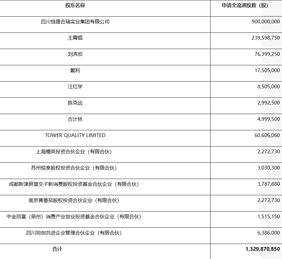 茶百道14名股东拟将所持合计1,329,870,850股境内未上市股份转为境外上市股份,并在香港联合交易所上市流通。