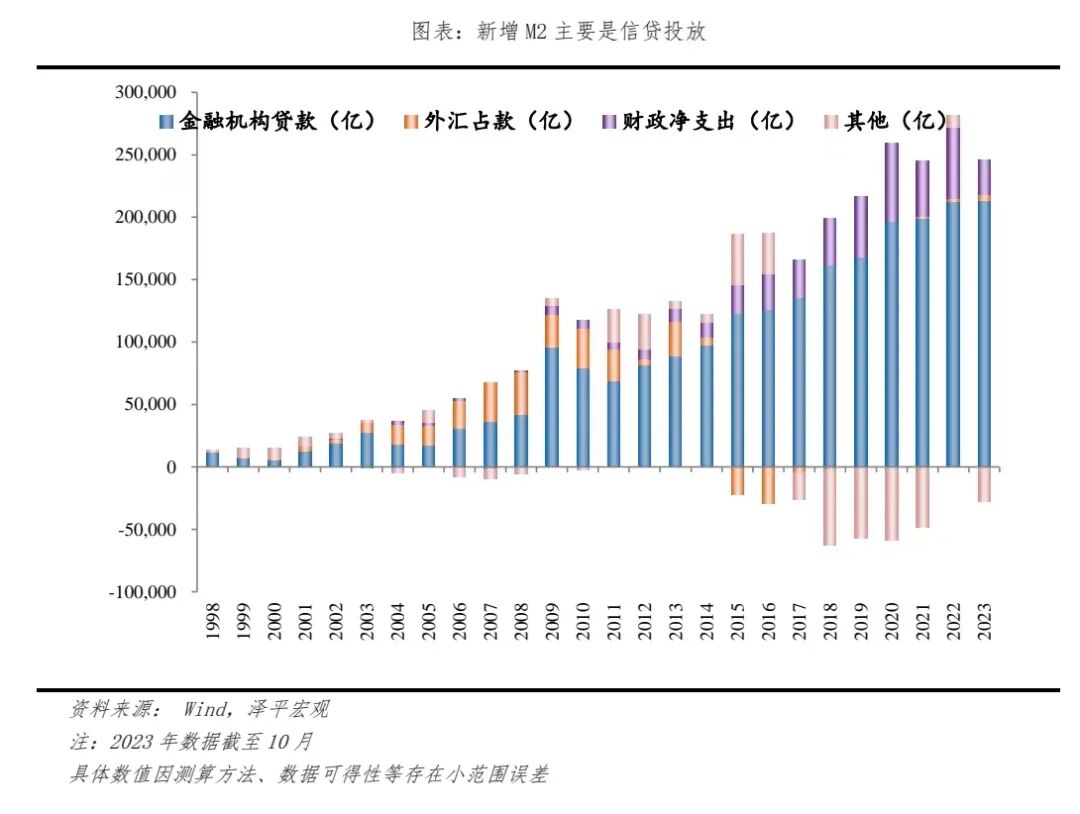 一是从来源看,信贷投放是主要的货币派生渠道,超过八成的M2由信贷派生。