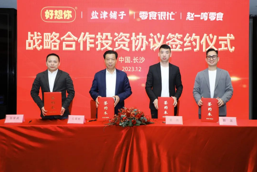 12月18日,好想你、盐津铺子控股、零食很忙、赵一鸣零食共同在湖南长沙签署战略合作投资协议,好想你、盐津铺子控股拟分别向零食很忙集团投资7亿元、3.5亿元。