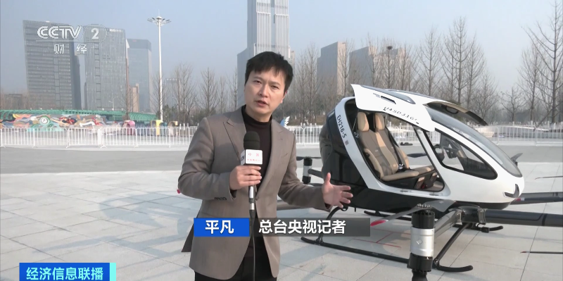 总台央视记者 平凡:这台航空器最大的特点就是可以实现无人驾驶,在地面可以对整架飞机进行遥控飞行,同时可以规避空中的障碍物,飞行的高度约50米,最终实现三到五分钟的空中游览。