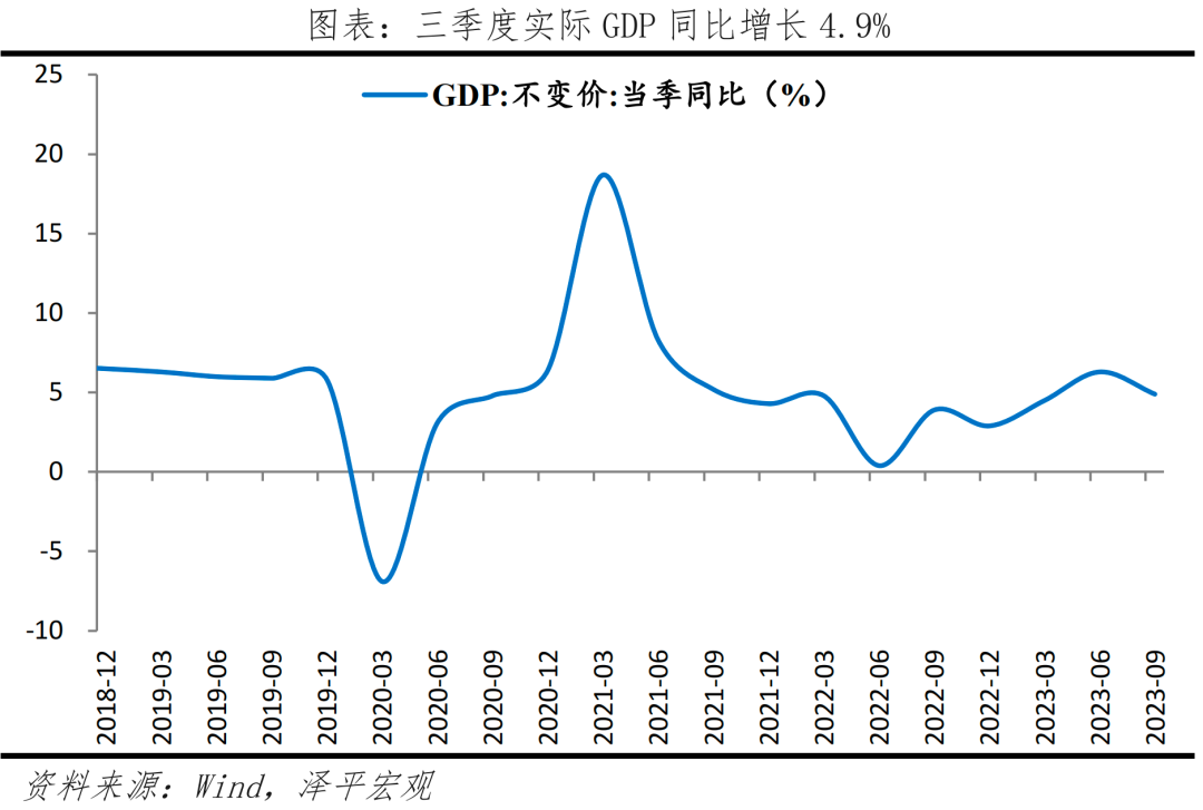2023年1-3季度GDP实际同比5.2%,两年复合增速4.1%,尚低于潜在增速水平,是“三年新冠疫情防控转段后经济恢复发展的一年”。当前经济增长内部存在不均衡的问题,需求不足、供给过剩,宏观数据企稳、但微观主体信心不足,房地产、基建、出口均出现下滑。新旧动能转换阶段,仍需要保持一定的经济增速,在发展中解决问题。