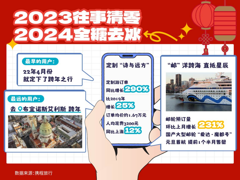携程研究院认为,假日旅游度假依旧是居民的生活刚需。作为2024年旅游消费的开端,元旦假期各地推出的形式多样的跨年活动及促消费政策,持续带动旅游经济向好发展,为新一年的市场开了个好头。