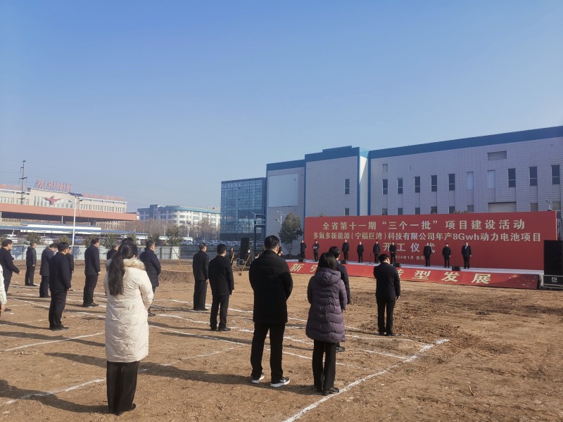 1月2日,2024年第一个工作日,焦作市与全省同步举行第十一期“三个一批”项目建设活动,该市纳入本期“三个一批”项目共90个,总投资605.7亿元。焦作市市长李亦博出席签约开工仪式并宣布多氟多新能源(宁福巨湾)科技有限公司年产8Gwh动力电池项目开工。