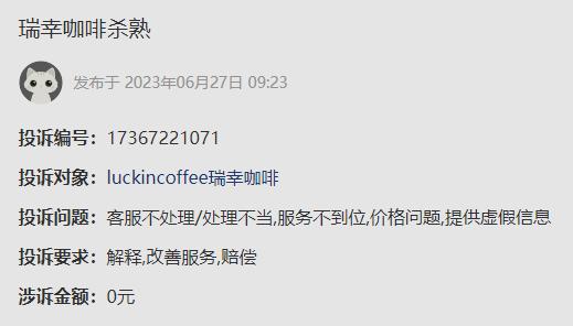 在黑猫投诉平台,也有不少用户反馈类似情况。一则投诉内容显示:同一时间,同一地址,同一门店在瑞幸咖啡App下单,安卓金额居然要比苹果用户贵,询问App客服根本不会正面回答问题,只知道搬话术敷衍。