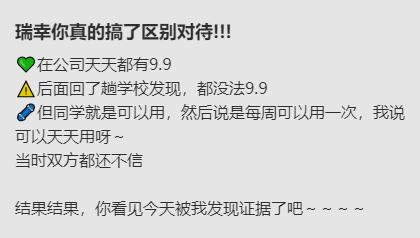 无独有偶,不少用户也在社交平台上分享了自己的经历。有小红书用户发帖称自己在公司天天都有9.9元的券,后来回到学校就没法再使用这一优惠,而同学则可以正常使用。