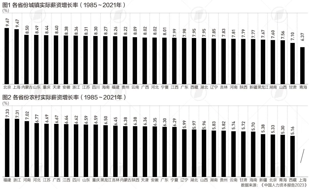 中国人力资本度量项目负责人、中央财经大学特聘教授李海峥对第一财经表示,各省份城乡实际薪资增长率是以本省为基数,增长率高低取决于经济发展、各级政府投资,也取决于转移支付等。课题组计算工资增长也进行了购买力平价调整,这对物价上涨慢的省份会有一定的提升作用。