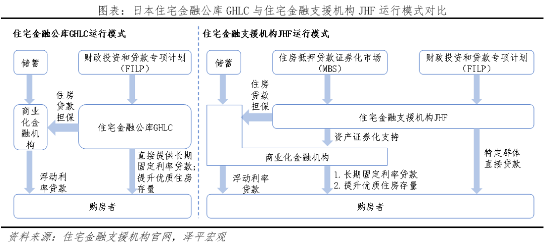 二战后日本政府成立住宅金融公库(GHLC),GHLC依赖政府财政投融资体制,支持住房重建融资;随房地产泡沫破裂,GHLC经营恶化,逐渐向美国两房模式转变。1950年,为加快二战后经济复苏和社会重建,日本政府成立住宅金融公库,为房企、居民提供中长期低息贷款。住宅金融公库对财政资金依赖度高,如日本邮政储蓄、国民养老金等靠国家信用筹集的资金均用于支持住宅金融公库。1965年起,日本商业性金融机构进入房地产市场,与政策性金融机构形成竞争关系;90年代房地产泡沫破裂引发提前还款潮,使住宅金融公库经营面临巨大挑战。一方面,住宅金融公库的住房按揭贷款人提前还款无罚款;另一方面,住宅金融公库遭遇提前还款后,需向财政转向贷款机构(FILP)支付罚款。为应对提前还贷潮、缓解财政压力,2000年起,住宅金融公库逐渐向美国两房模式看齐,2003年,向商业化金融机构购买抵押贷款并发行MBS。