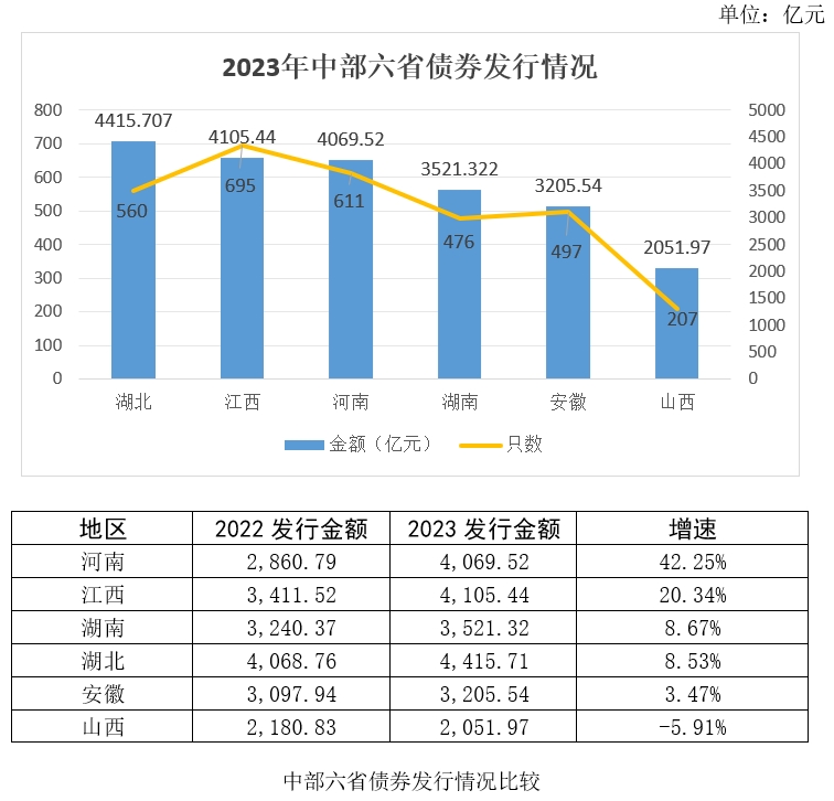 1月9日,大河财立方记者从河南省地方金融监管局获悉,2023年全省非金融企业发行信用债611只,发行金额4069.52亿元,较去年增加1208.73亿元,同期增长42.3%。发行金额全国排名第12位、中部六省排名第3位,发行金额同比增速在中部六省排名第一。