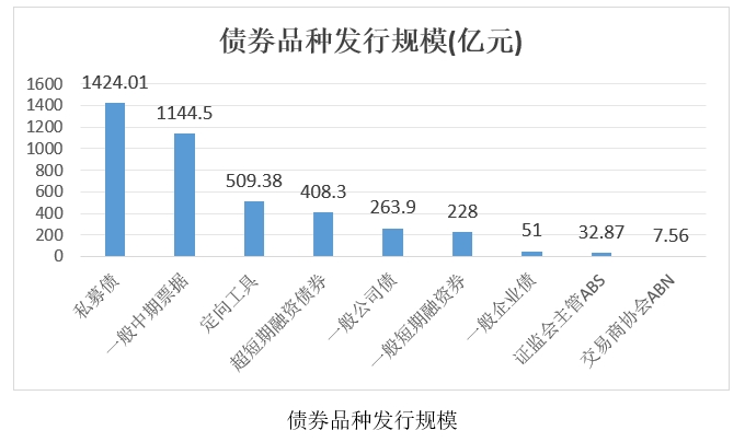 从债券发行分类别来看,交易商协会债务融资工具发行326只,规模合计2297.74亿元,同比增加45.43%;交易所公司债及ABS发行276只,规模合计1720.78亿元,同比增加49.66%;发改委企业债发行9只,规模合计54.00亿元,同下降50.58%。总体来看,2023年河南省非金融企业信用债发行规模较上年大幅提升,创近年来历史新高。其中,私募公司债发行规模最大,其次是中期票据,两者规模占比合计63.12%。